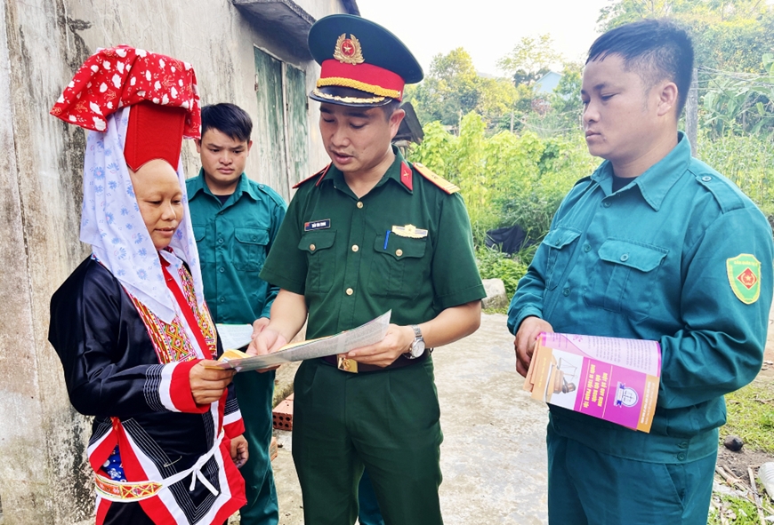 | Lực lượng vũ trang tỉnh Quảng Ninh thường xuyên bám địa bàn tuyên truyền pháp luật cho đồng bào vùng biên giới. Ảnh: NGUYỄN TRƯỜNG |