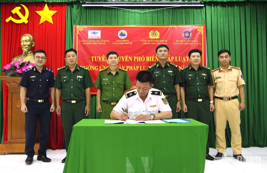 Tại Trạm Biên phòng cửa khẩu cảng Hiệp Phước (Ban chỉ huy Biên phòng cửa khẩu cảng TP Hồ Chí Minh, Ban chỉ huy Bộ đội Biên phòng TP Hồ Chí Minh) đã phối hợp với Công an xã Hiệp Phước, Trạm Cảnh sát Đường thủy Phú Xuân, Cảng vụ Hàng hải TP Hồ Chí Minh, Chi cục Hải quan Sài Gòn khu vực II tổ chức chương trình tuyên truyền pháp luật cho các lực lượng, doanh nghiệp và người dân trên địa bàn.