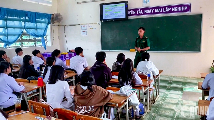 Hoạt động được triển khai theo hình thức linh hoạt, cán bộ Đồn Biên phòng trực tiếp đến từng lớp học để tuyên truyền nhằm tạo không khí gần gũi, giúp học sinh dễ tiếp thu và chủ động trao đổi.