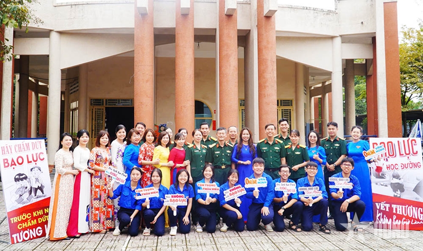 Trực tiếp tuyên truyền cho học sinh, Thượng tá Lê Anh Tuấn, giảng viên Trường Sĩ quan Lục quân 2 nhấn mạnh: “Bạo lực học đường hiện nay là vấn đề đáng lo ngại, ảnh hưởng nghiêm trọng đến môi trường giáo dục, tinh thần và nhân cách học sinh. Vì vậy, việc tuyên truyền, giáo dục nâng cao nhận thức phòng, chống bạo lực học đường cần được thực hiện thường xuyên, bằng nhiều hình thức phong phú; ứng dụng công nghệ số trong công tác tuyên truyền thông qua xây dựng các sản phẩm truyền thông trực quan (poster, video, bài viết) trên nền tảng mạng xã hội học đường. Qua đó, giúp học sinh dễ tiếp cận thông tin, hiểu rõ hậu quả của hành vi bạo lực, hình thành lối sống tích cực, nhân ái, góp phần xây dựng môi trường học đường thực sự văn minh, an toàn và thân thiện.
