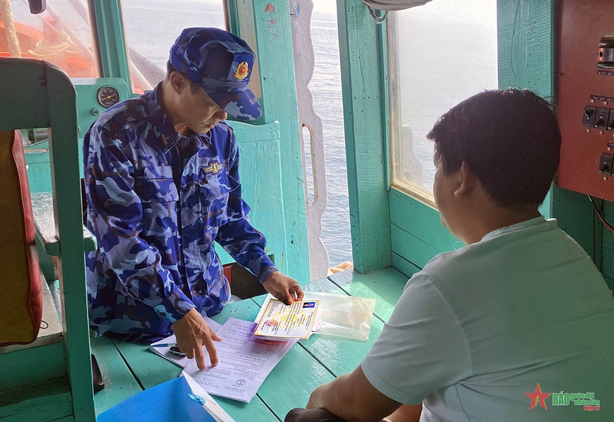 Kiểm tra giấy tờ chứng minh nguồn gốc hàng hóa và bằng cấp, chứng chỉ chuyên môn của thuyền viên tàu TG 90338 TS.