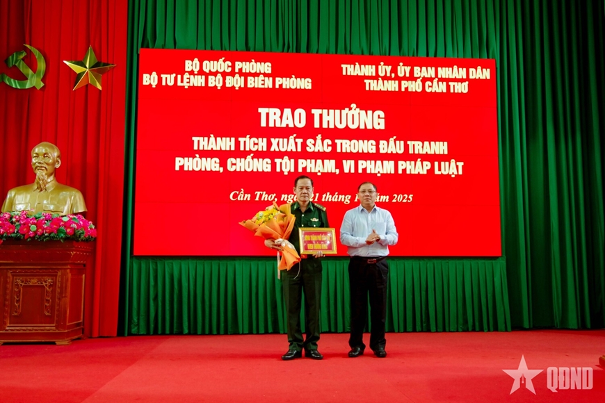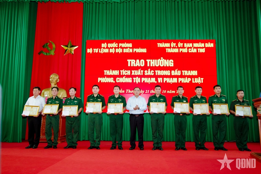 Đồng thời, UBND TP Cần Thơ thưởng 50 triệu đồng và trao bằng khen tặng 5 tập thể, 10 cá nhân thuộc BĐBP TP Cần Thơ có thành tích trong vụ án vận chuyển trái phép dầu DO.