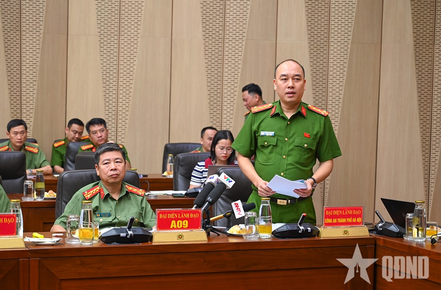 | Đại diện lãnh đạo Công an TP Hà Nội trả lời câu hỏi của phóng viên. |