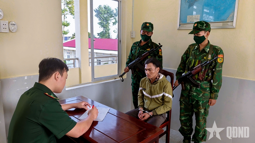 Tổ công tác Đồn Biên phòng Vĩnh Châu (Ban chỉ huy Bộ đội Biên phòng TP Cần Thơ) lấy lời khai đối tượng Diệp Kết.