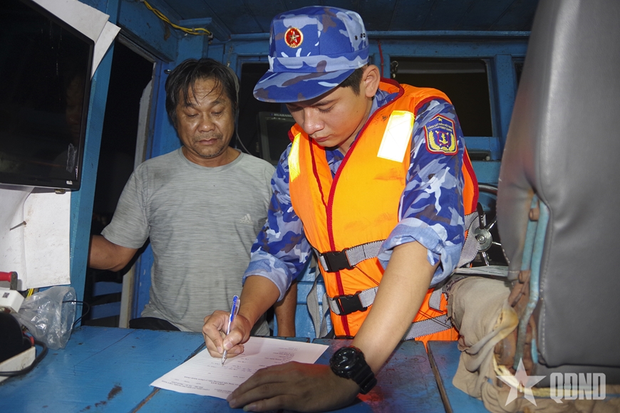 Qua kiểm tra, lực lượng chức năng phát hiện tàu không duy trì tín hiệu giám sát hành trình VMS; số hiệu ghi ở hai bên mũi tàu không trùng khớp với đăng ký phương tiện.