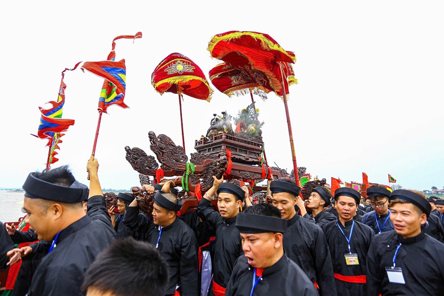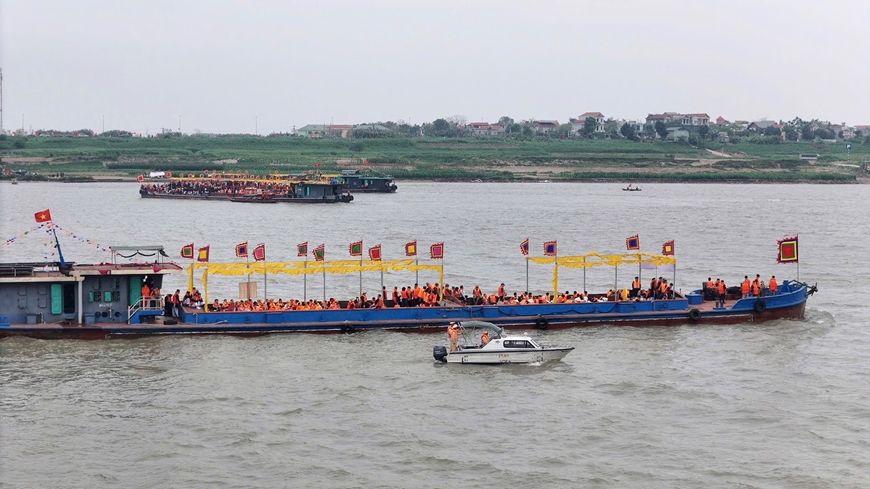 Trung tá Trịnh Văn Trường, cán bộ Đội CSGT đường thủy số 1 cho biết: Sông Hồng có luồng lạch phức tạp, lưu lượng tàu thuyền lớn, vì vậy việc bảo vệ an toàn cho đoàn rước là nhiệm vụ trọng tâm. Đơn vị đã huy động nhiều cán bộ, chiến sĩ cùng phương tiện chuyên dụng, phối hợp các lực lượng liên quan phân luồng, kiểm soát chặt chẽ tải trọng các tàu rước, yêu cầu không chở quá số người quy định và tất cả người dân phải mặc áo phao. Sự an toàn của người dân góp phần tạo nên một mùa lễ hội an toàn, văn minh.