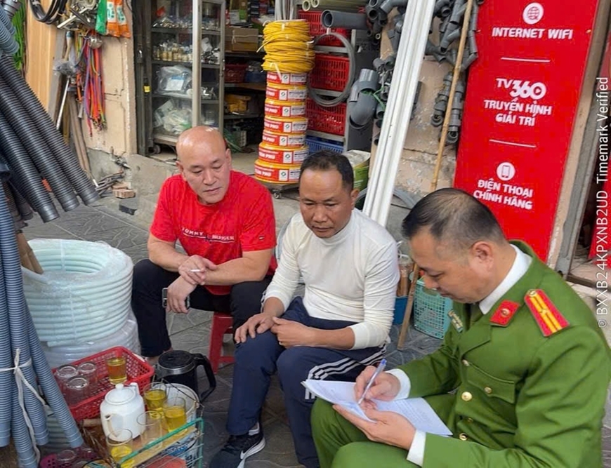 Công an phường Tây Hồ đến từng hộ dân hỗ trợ khai báo.