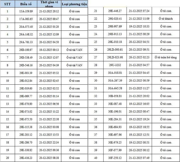 Công an TP Hà Nội thông tin, từ 0 giờ ngày 1-1-2026 đến 18 giờ ngày 4-1-2026, thông qua hệ thống camera AI, Phòng Cảnh sát giao thông (Công an TP Hà Nội) đã phát hiện hơn 670 trường hợp vi phạm trật tự, an toàn giao thông (hơn 340 trường hợp là ô tô, hơn 320 trường hợp xe mô tô).