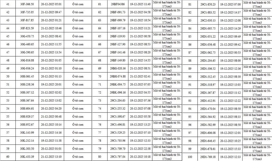 Công an TP Hà Nội thông báo danh sách 342 phương tiện vi phạm trật tự, an toàn giao thông được phát hiện qua hệ thống camera AI.