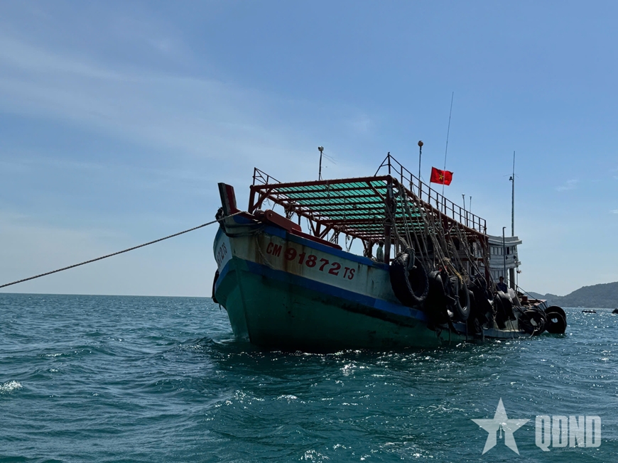 | Dẫn giải tàu cá mang số hiệu CM-91872-TS về cảng Hải đội 422, Hải đoàn 42, Bộ tư lệnh Vùng Cảnh sát biển 4. |