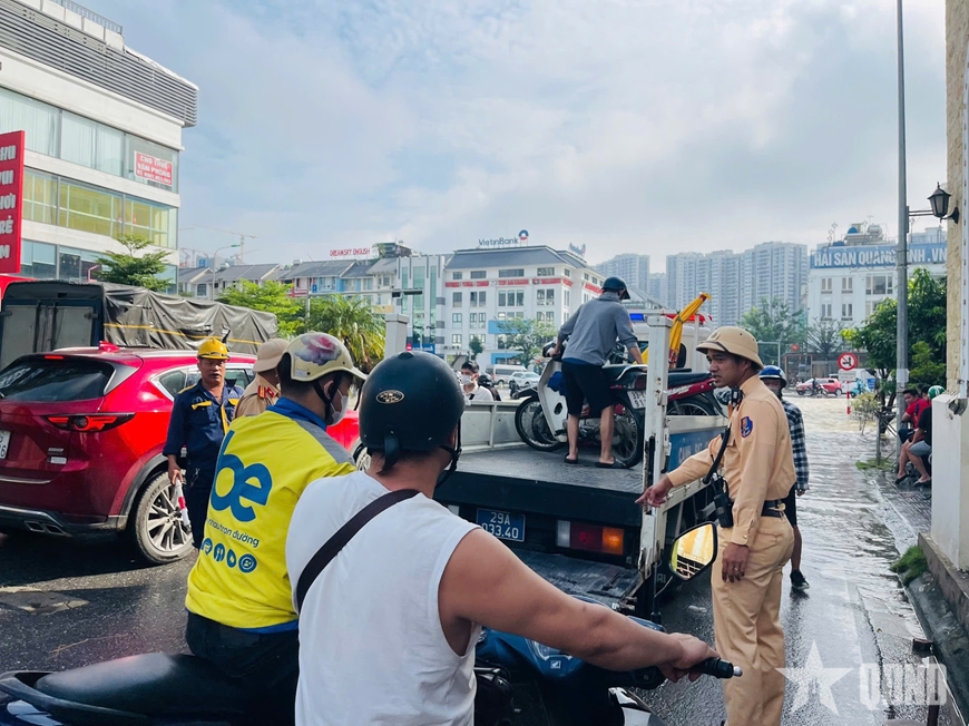 Tại các điểm ngập này, lực lượng cảnh sát giao thông Hà Nội đã được tăng cường túc trực để phân luồng giao thông từ xa; hướng dẫn phương tiện di chuyển an toàn; hỗ trợ người dân bị chết máy hoặc gặp sự cố.