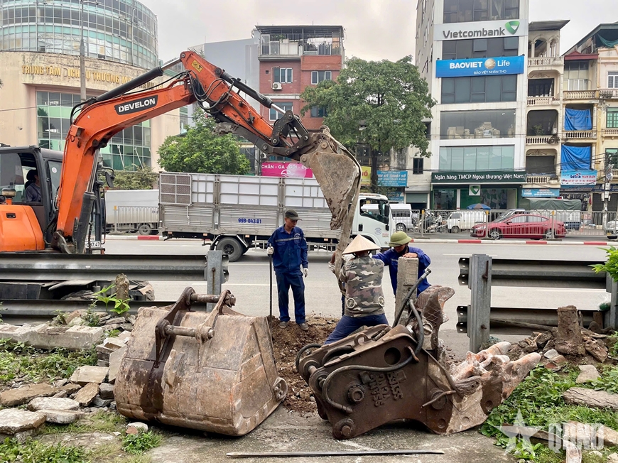Tại xã Phú Xuyên, Đội CSGT đường bộ số 8 (Phòng CSGT Hà Nội) phối hợp với các đơn vị chức năng tiến hành rào chắn nhiều lối đi tự mở. Lực lượng chức năng sử dụng cọc sắt lớn, chôn sâu và gia cố chắc chắn nhằm ngăn chặn việc tái mở lối đi.