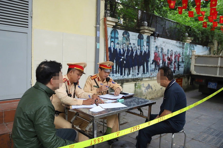 | Lực lượng chức năng xử lý phụ huynh vi phạm. |