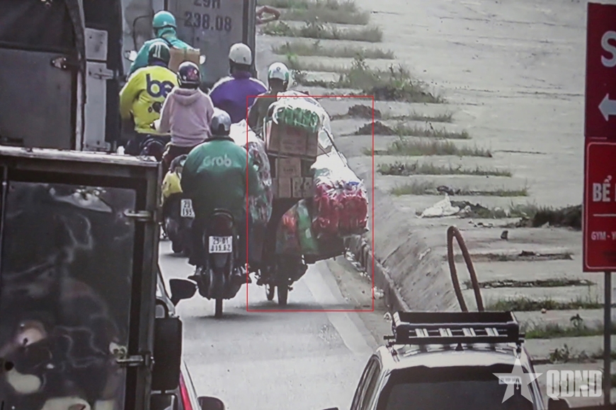 Hình ảnh ghi nhận từ hệ thống camera AI cho thấy nhiều trường hợp shipper chở hàng hóa cồng kềnh, buộc phía sau xe máy, che lấp hoàn toàn biển kiểm soát. Các hình ảnh được ghi nhận rõ nét, làm căn cứ xác minh, xử lý vi phạm.