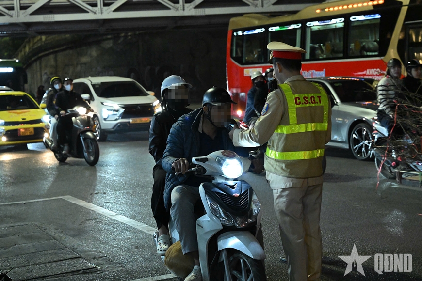 Tối 6-2, tổ công tác Đội CSGT đường bộ số 1 phối hợp với lực lượng Công an phường làm nhiệm vụ tuần tra, kiểm soát, xử lý vi phạm nồng độ cồn trên đường Trần Nhật Duật (TP Hà Nội).