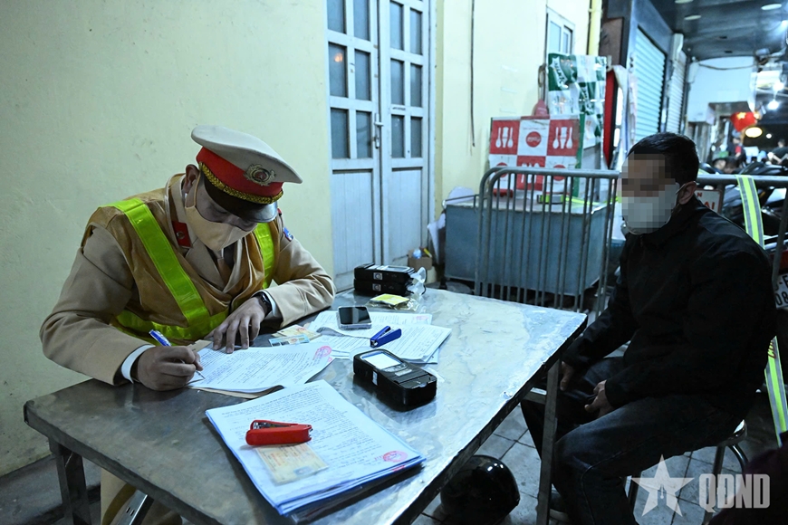 Điển hình là trường hợp của nam tài xế L.H.P (sinh năm 1966, trú tại TP Hà Nội) vi phạm ở mức 0,411 mg/L khí thở. Trình bày với tổ công tác, ông L.H.P cho biết vừa liên hoan tất niên tại chỗ làm ở Long Biên trở về nhà.