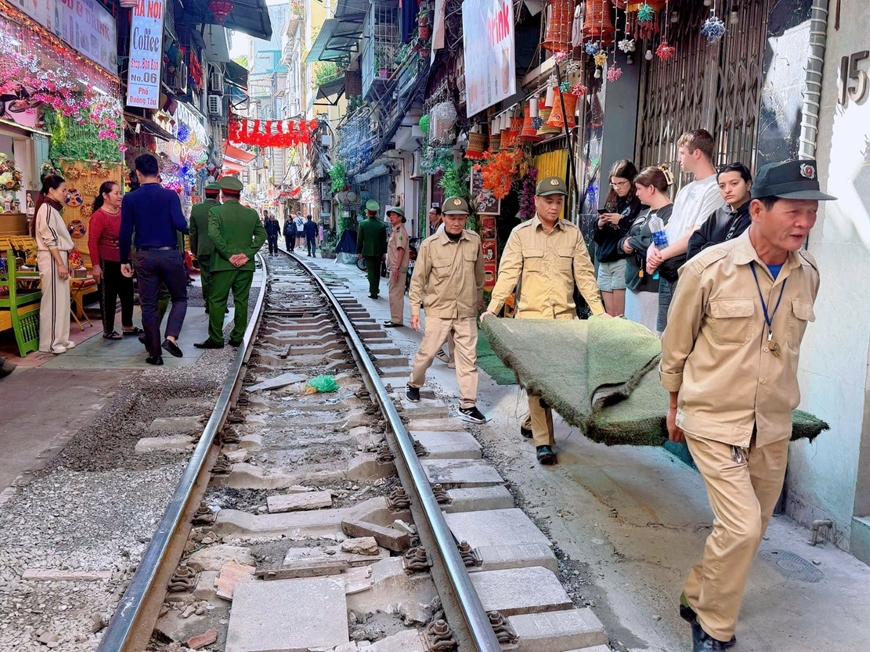 Khu vực ngõ đường tàu Khâm Thiên - Lê Duẩn, gần đây, lượng du khách, người dân đến chụp ảnh, tham quan đông, nhiều hộ đã mở rộng hoạt động kinh doanh, đặt bàn ghế, mái che, mái vẩy lấn chiếm hành lang an toàn giao thông đường sắt, tiềm ẩn nguy cơ mất an toàn khi tàu hỏa chạy qua.