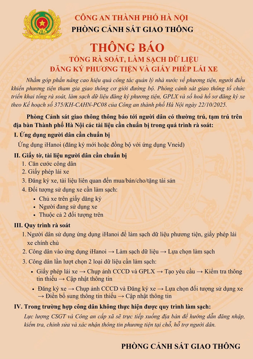 Kế hoạch cao điểm được triển khai theo hai giai đoạn: Giai đoạn 1, đẩy mạnh tuyên truyền, vận động người dân tự kê khai thông tin phương tiện, chủ phương tiện trên ứng dụng iHanoi; Công an cấp xã tiến hành rà soát, hướng dẫn các trường hợp chưa khai báo.