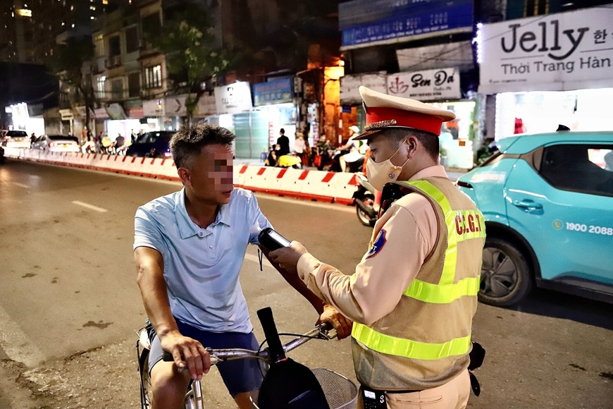 Theo đó, chỉ trong hơn một giờ làm nhiệm vụ, tổ công tác đã phát hiện và xử lý hơn 10 trường hợp vi phạm nồng độ cồn, bao gồm người điều khiển ô tô, xe máy và cả xe đạp. Các trường hợp đều được kiểm tra bằng thiết bị chuyên dụng, công khai kết quả tại chỗ và lập biên bản theo đúng quy định.
