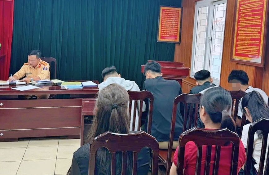 Ngày 29-10, Đội CSGT đường bộ số 5 đã mời 8 nam thanh niên liên quan cùng phương tiện đến trụ sở đơn vị để làm việc, có sự chứng kiến của phụ huynh. Tại đây, các thanh niên đều trong độ tuổi từ 16 đến 18 đã thừa nhận hành vi vi phạm gồm: Không đội mũ bảo hiểm khi điều khiển xe mô tô, đi xe dàn hàng ngang gây cản trở giao thông, không có giấy phép lái xe. Cơ quan công an cũng làm rõ hành vi giao xe cho người không đủ điều kiện điều khiển phương tiện của các chủ phương tiện.