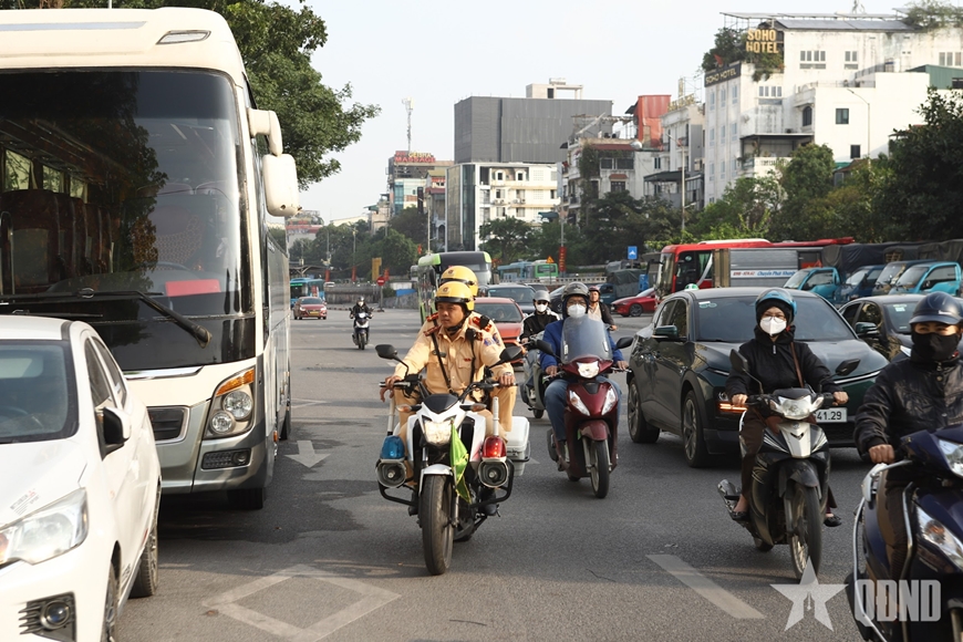 CSGT tuần tra kiểm soát trên tuyến quanh khu vực hạn chế vào buổi sáng.