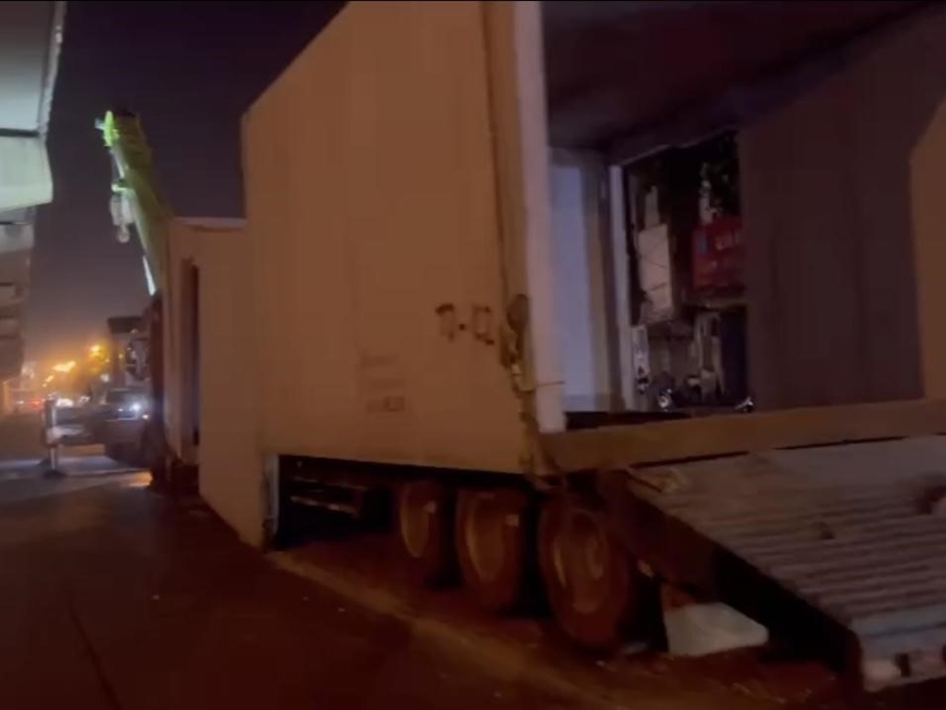 Rạng sáng ngày 12-10, trên mạng xã hội Facebook xuất hiện thông tin và hình ảnh về việc một xe đầu kéo chở nhà lắp ghép, chằng buộc không chặt, làm rơi khối bê tông xuống đường tại khu vực ngang nhà số 14 đường Cầu Diễn, thuộc phường Phú Diễn, TP Hà Nội.