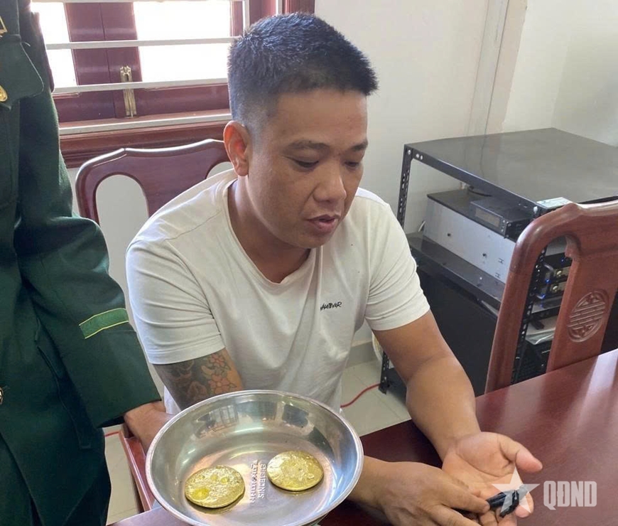 Trước đó, vào lúc 11 giờ 00 phút, ngày 8-11-2025, tại luồng nhập cảnh phương tiện Nhà Kiểm soát liên hợp cửa khẩu quốc tế Nam Giang (thuộc thôn Đắc Ôốc, xã La Dêê), Đồn Biên phòng Cửa khẩu quốc tế Nam Giang phối hợp với Phòng Nghiệp vụ (BĐBP thành phố Đà Nẵng) và Hải quan cửa khẩu quốc tế Nam Giang tiến hành kiểm tra phương tiện xe khách 16 chỗ, hiệu Ford Transit mang BKS 43H.05665 khi vừa nhập cảnh từ Lào vào Việt Nam. Kết quả, lực lượng chức năng phát hiện trong xe cất giấu 2 miếng kim loại vàng, tổng khối lượng 440,99 gam.