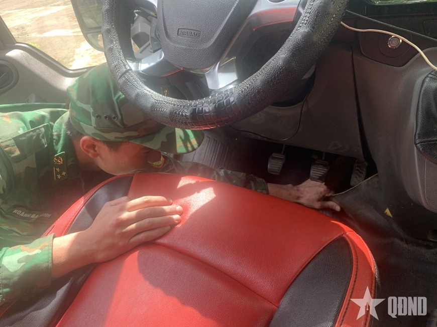 Cán bộ Đồn Biên phòng Cửa khẩu quốc tế Nam Giang phát hiện 2 miếng vàng do Ngô Văn Đồng cất giấu trong xe khách BKS 43H.05665.
