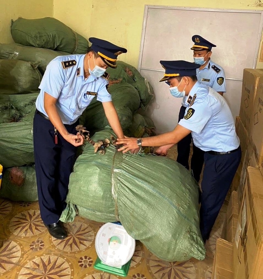 Trước sự chứng kiến của nhân dân và giám sát của các cơ quan chức năng, Đoàn kiểm tra đã tổ chức kiểm tra thực tế các bao tải dứa màu xanh, phát hiện bên trong toàn bộ chứa đựng hai loại hàng hóa là: Nấm trúc (nấm lim), nấm trường thọ (linh chi) chưa qua sơ chế không rõ nguồn gốc, xuất xứ, không có hóa đơn chứng từ, giấy tờ liên quan kèm theo. Tổng trọng lượng hàng hóa lên đến 572kg. Lô hàng có trị giá ước tính theo giá thị trường khoảng 300 triệu đồng.