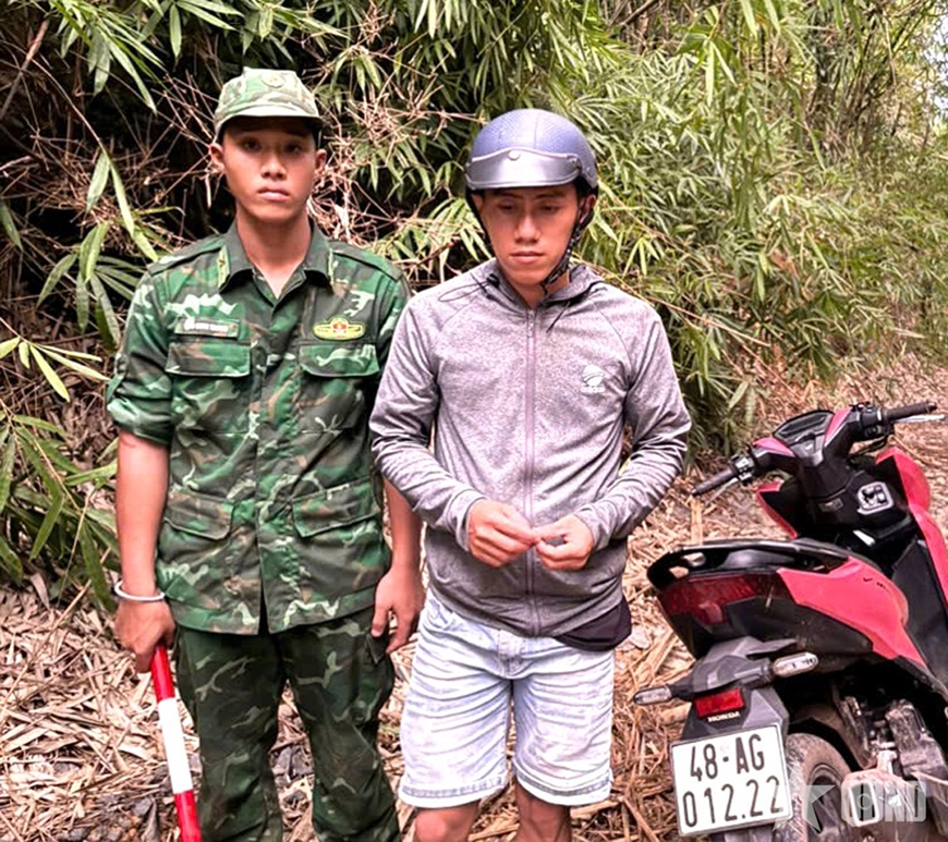 Trước đó, lúc 17 giờ ngày 5-11, trong quá trình tuần tra, kiểm soát bảo vệ biên giới, lực lượng Đồn Biên phòng Phước Thiện phát hiện 2 đối tượng khả nghi điều khiển xe mô tô từ nội địa tiến về khu vực biên giới. Tổ công tác đã yêu cầu dừng phương tiện để kiểm tra, xác định gồm: Phạm Văn Anh Tuấn (sinh năm 2003, trú tại xã Hưng Phước, tỉnh Đồng Nai) điều khiển xe mô tô biển kiểm soát 93G1-334.56 và Phạm Đăng Trinh (sinh năm 2000, trú tại xã Bảo Lâm, tỉnh Lâm Đồng) điều khiển xe mô tô biển kiểm soát 48AG-012.22.