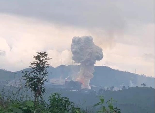 | Hiện trường vụ nổ nhìn từ xa. Ảnh: laocai.gov.vn |
