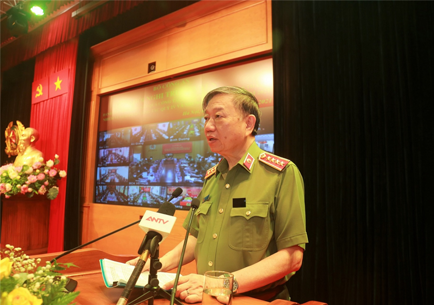 | Bộ trưởng Bộ Công an, Đại tướng Tô Lâm phát biểu tại hội nghị. Ảnh: Bộ Công an |