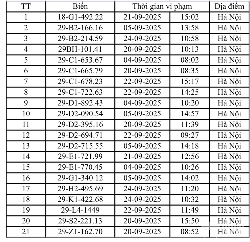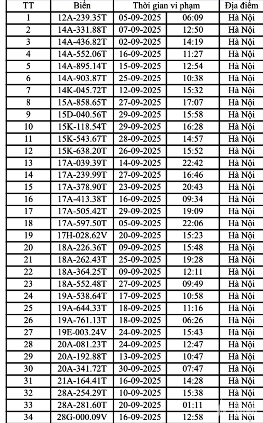 Trong tháng 9-2025 (từ ngày 1 đến 30-9), thông qua hệ thống camera giám sát giao thông, Phòng Cảnh sát giao thông Công an TP Hà Nội đã phát hiện, ghi hình 221 trường hợp phương tiện vi phạm, gồm cả ô tô và mô tô.