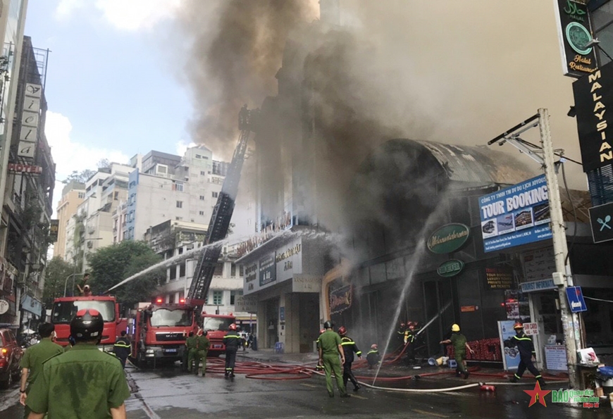 Thông tin ban đầu, khoảng 9 giờ 30 phút, ngọn lửa xuất phát từ nhà hàng District K, các nhân viên và người dân xung quanh tiến hành dập lửa tại chỗ nhưng không thành. Nhận được tin báo, lực lượng Cảnh sát Phòng cháy chữa cháy và cứu nạn cứu hộ, Công an TP Hồ Chí Minh và Quận 1 đã điều động nhiều phương tiện cùng cán bộ, chiến sĩ đến hiện trường khẩn trương triển khai chữa cháy.