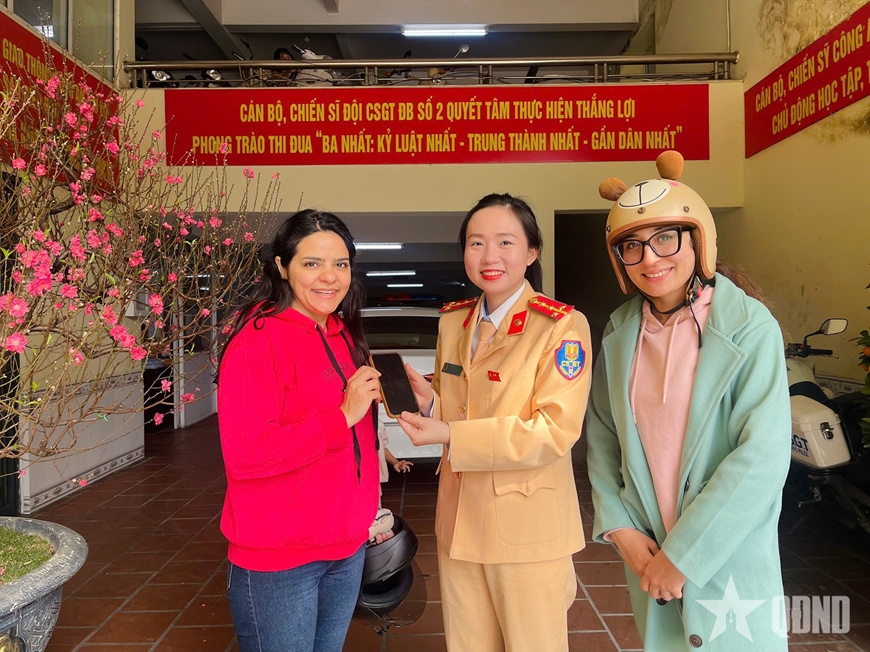 CSGT Hà Nội hỗ trợ du khách nước ngoài tìm lại tài sản thất lạc.