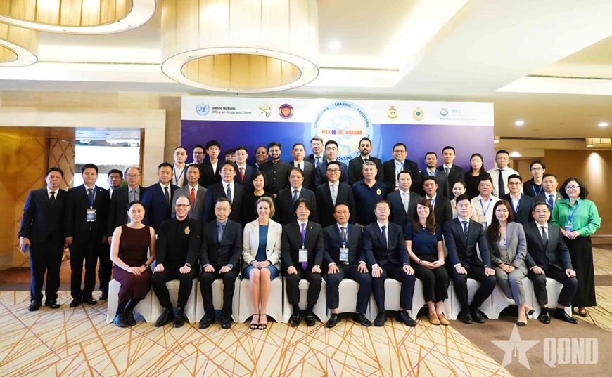 | Đại biểu cơ quan hải quan các nước thành viên và tổ chức quốc tế tham dự Hội nghị tổng kết Chiến dịch Con rồng Mê Kông 7 tại Khánh Hòa. |