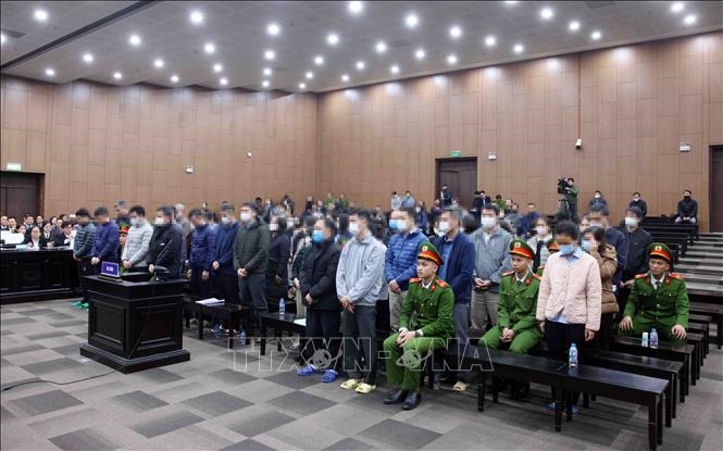 | Các bị cáo tại phiên tòa xét xử. |