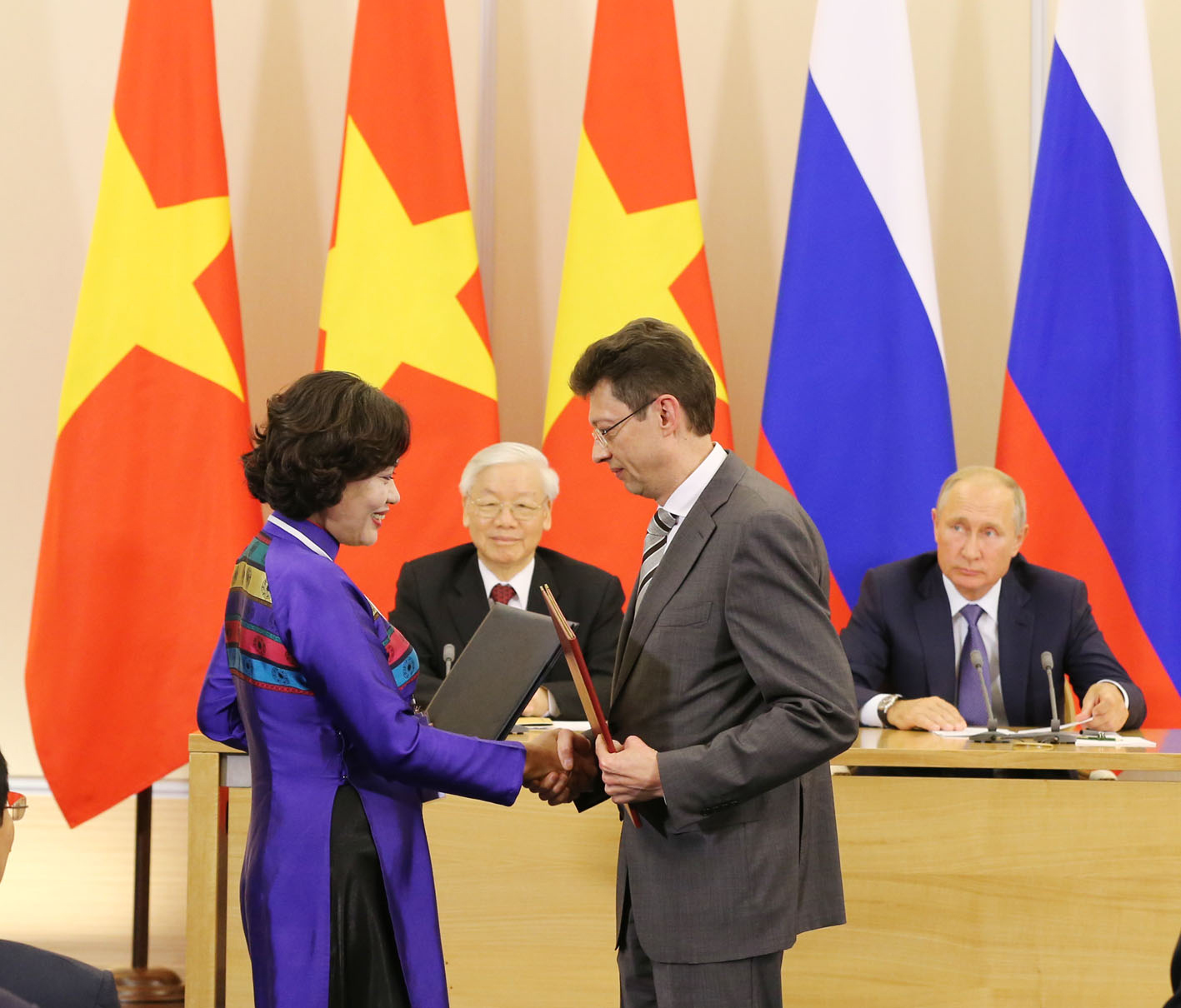 Tổng Bí thư Nguyễn Phú Trọng và Tổng thống V. Putin chứng kiến Lễ ký kết 14 văn kiện hợp tác quan trọng giữa hai nước.