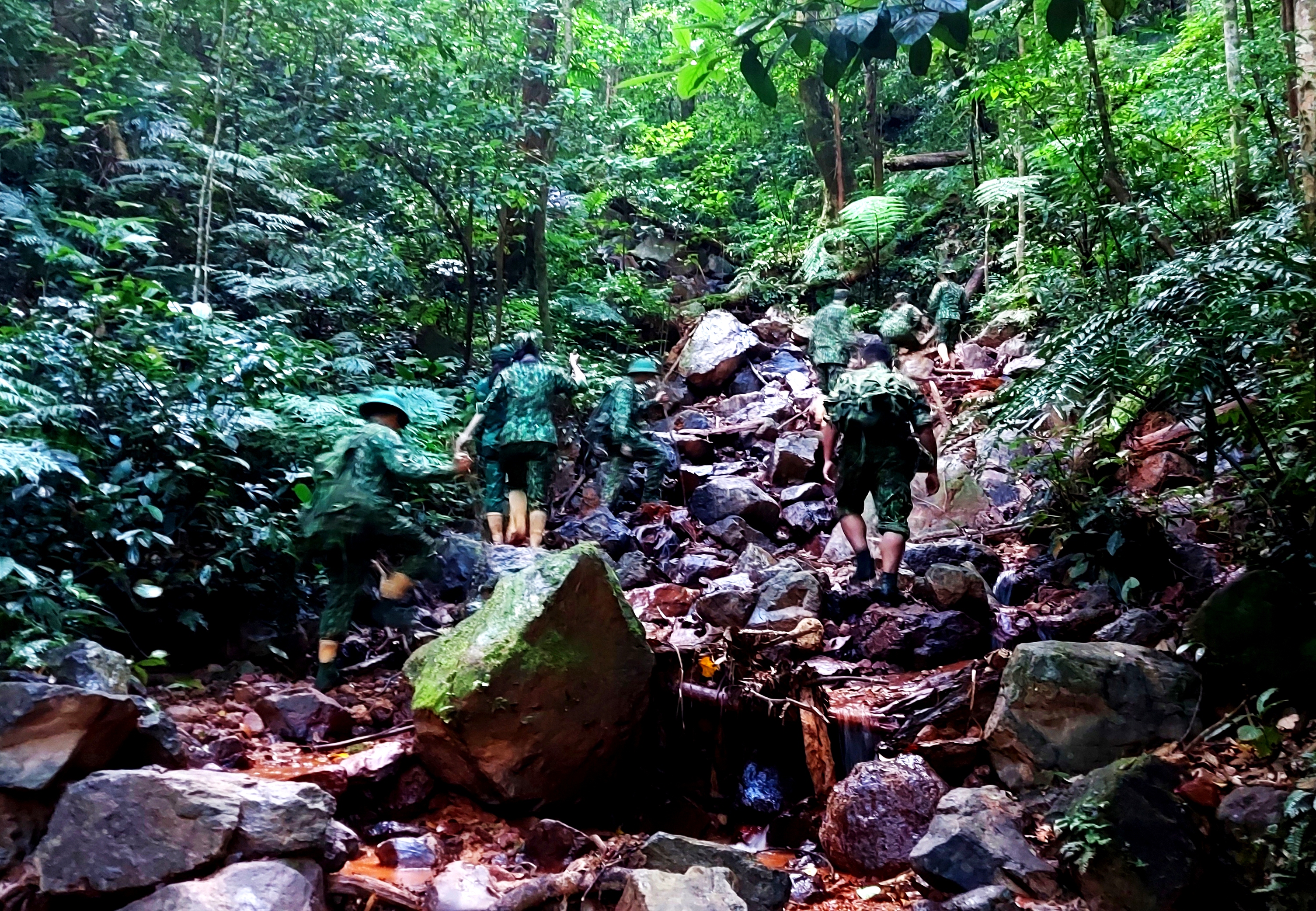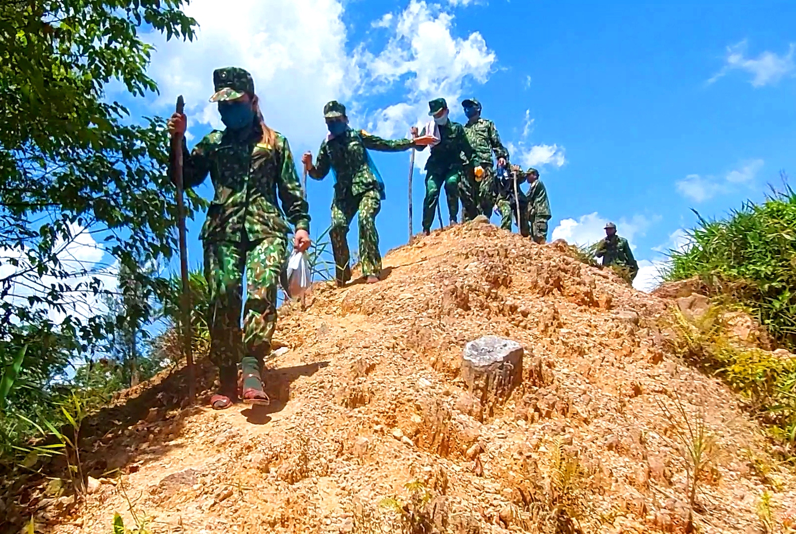 QĐND Online - Trong hai ngày 3 và 4-6, Hội Phụ nữ Bộ đội Biên phòng tỉnh Quảng Nam đã đến thăm và động viên cán bộ, chiến sĩ nơi “tuyến đầu” vùng biên giới thuộc huyện Nam Giang (Quảng Nam). Sau nhiều giờ băng rừng, vượt suối mới đến được 2 điểm cắm chốt 716 và 718 của Đồn Biên phòng cửa khẩu Nam Giang. Nơi này, hơn 1 năm qua, các anh đã không quản ngày, đêm bám sát từng đường mòn, tổ chức tuần tra, kiểm soát chặt không để tình trạng người dân xuất, nhập cảnh trái phép, kiên quyết không để dịch bệnh lây lan, bùng phát vào nội địa. Để tiếp sức và chia sẻ những khó khăn, thiếu thốn với cán bộ, chiến sĩ đang ngày đêm trực chốt trên tuyến biên giới Việt Nam – Lào. Hội Phụ nữ Bộ đội Biên phòng tỉnh đã tặng 1000 khẩu trang, 200 chai nước lọc, 200 chai nước sát khuẩn, 10 thùng mỳ tôm và nhiều nhu yếu phẩm và vật dụng sinh hoạt cần thiết khác.