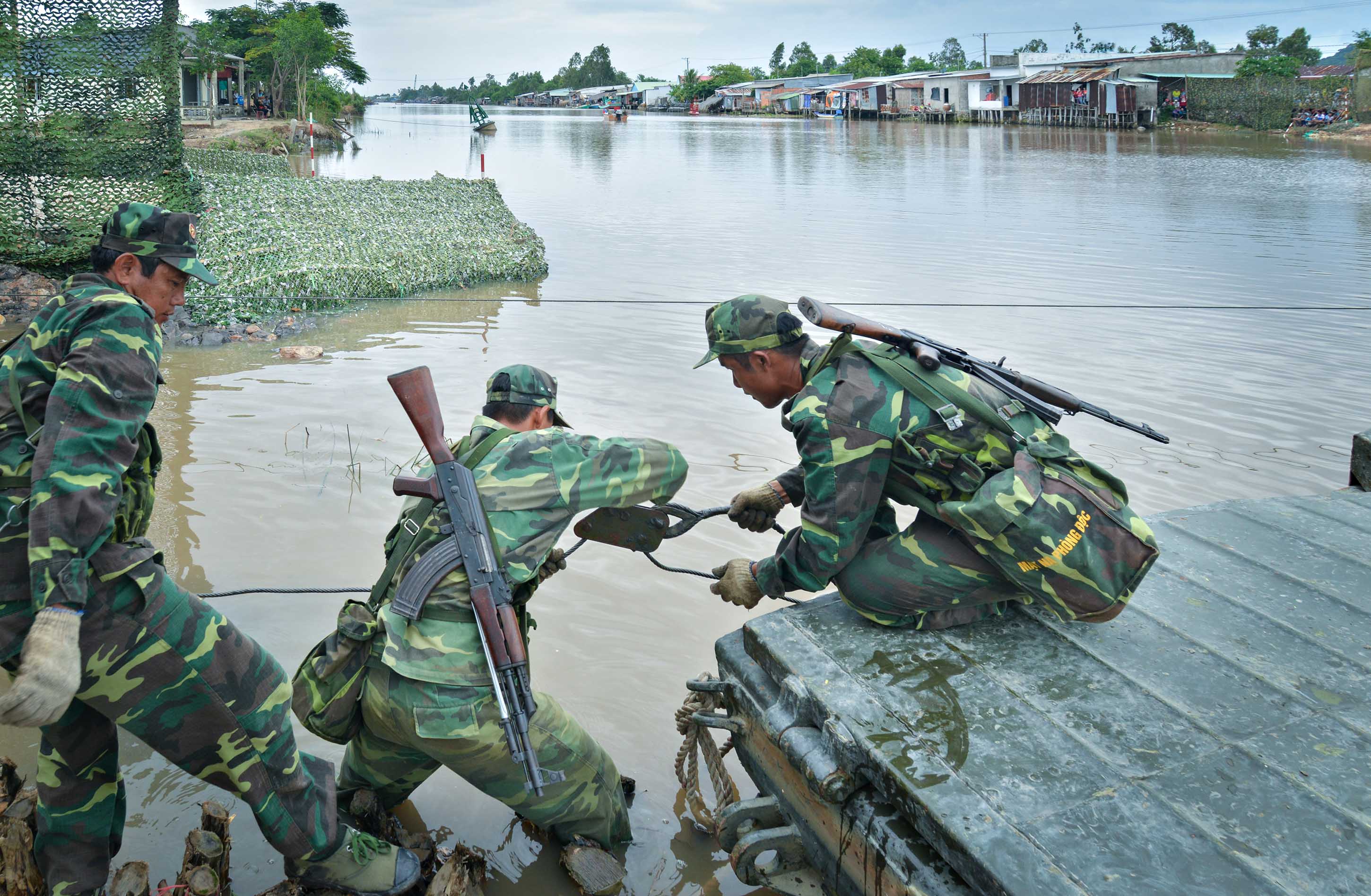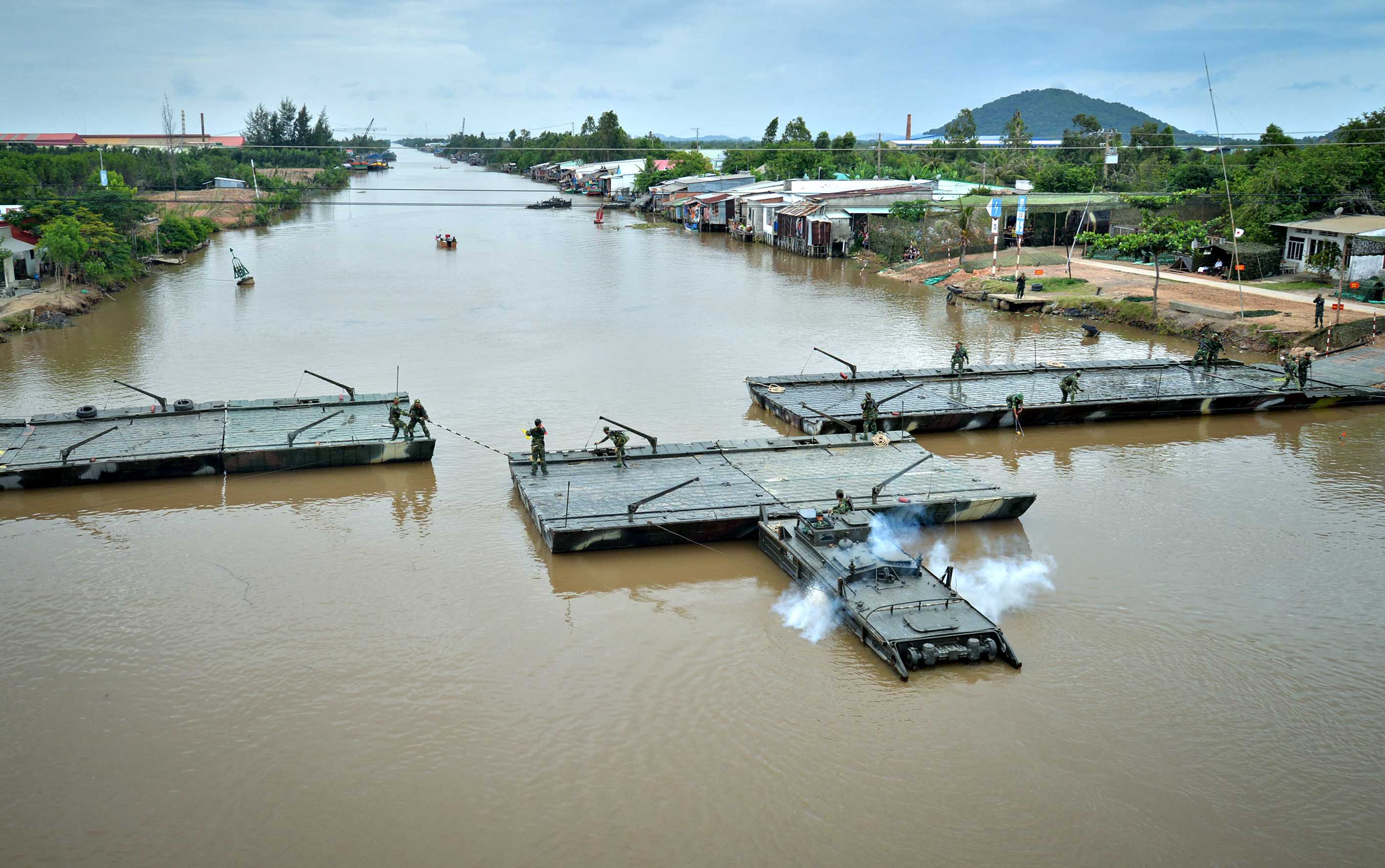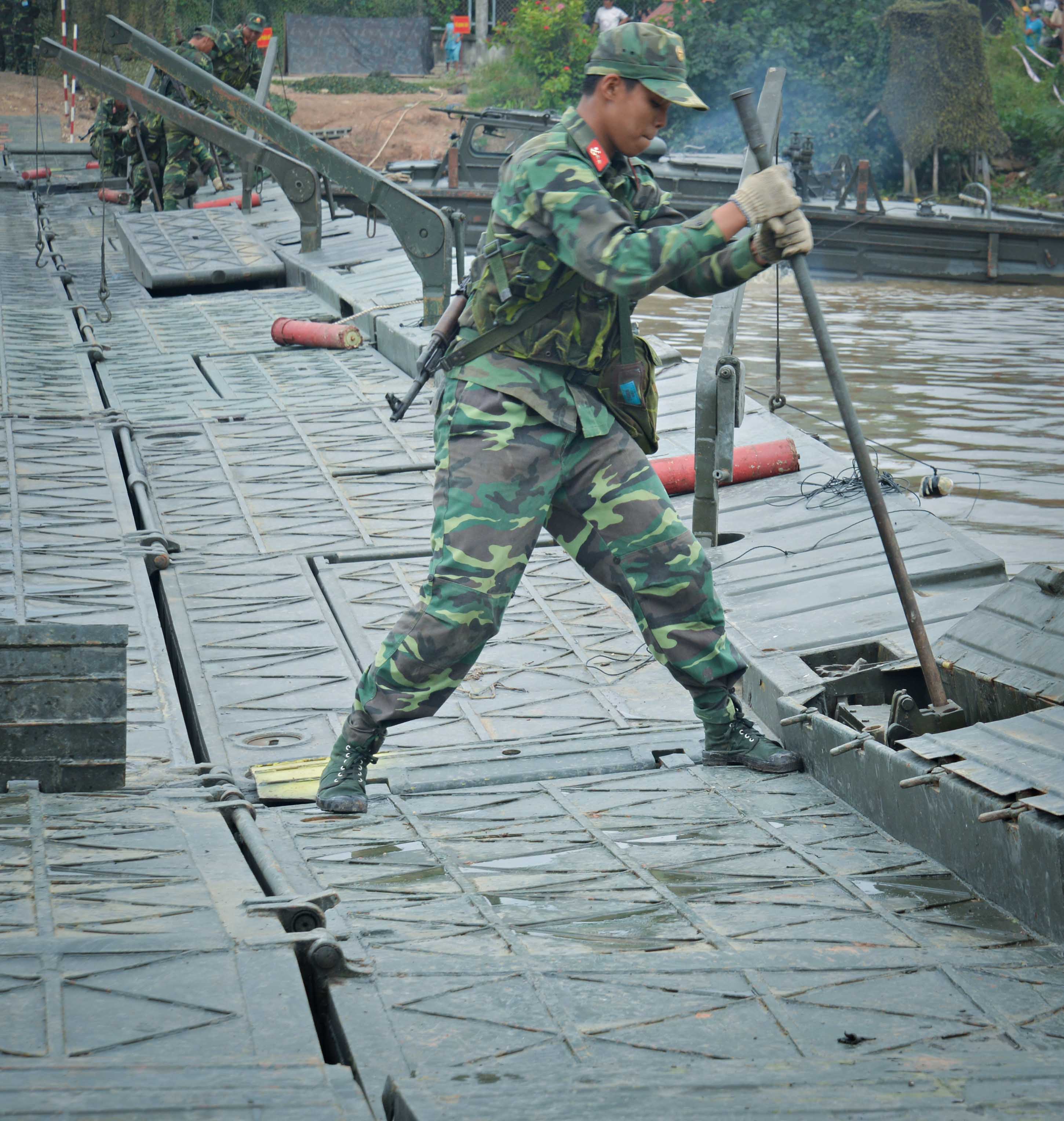 Báo Quân đội nhân dân Điện tử xin gửi tới bạn đọc một số hình ảnh bắt cầu nổi vượt sông của Lữ đoàn Công binh 25, Quân khu 9.