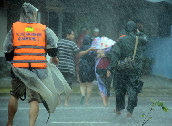 Phóng viên Báo QĐND Online ghi lại một số hình ảnh cán bộ, chiến sĩ Bộ CHQS tỉnh Bình Định không quản ngại khó khăn, gian khổ, đã nỗ lực hết sức mình để giúp dân sơ tán đến nơi an toàn.