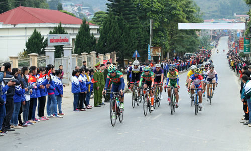 Những chặng đầu của các đèo, cua-rơ của đội tuyển Lào (LAO CCN TEAM) có cú bứt phá khá ngoạn mục khi bỏ xa các đối thủ hàng ki-lô-mét phía sau.