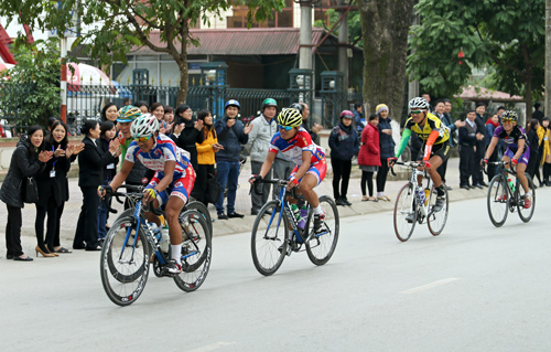 ...động viên các cua-rơ hướng về phía đích.