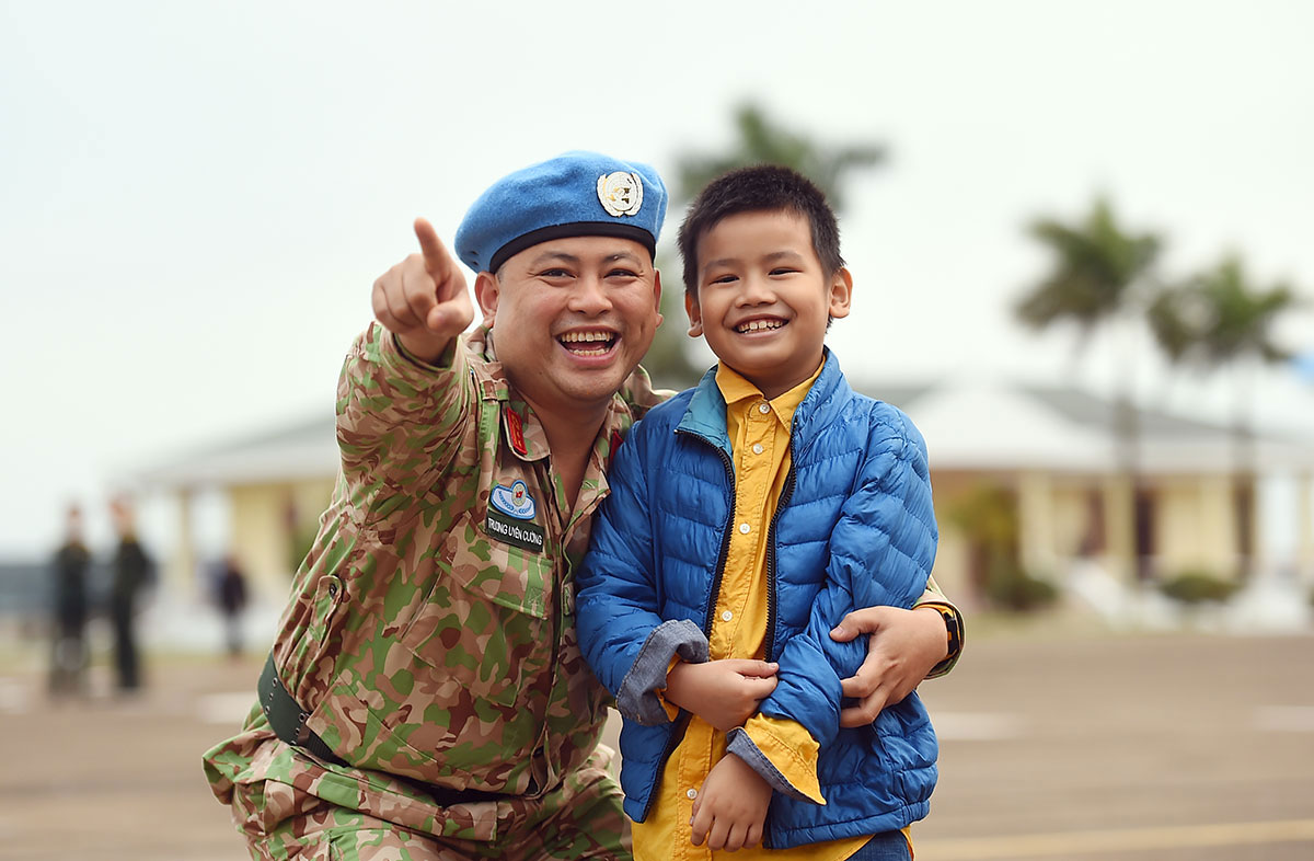 Những nụ cười tươi vui, háo hức sẽ là hành trang ngọt ngào theo chân các chiến sĩ mũ nồi xanh khi làm nhiệm vụ xa Tổ quốc.