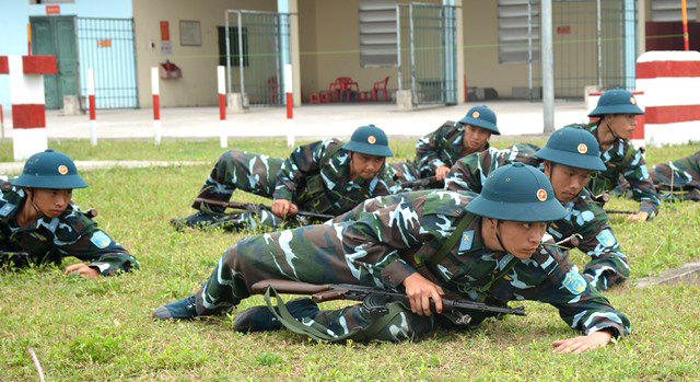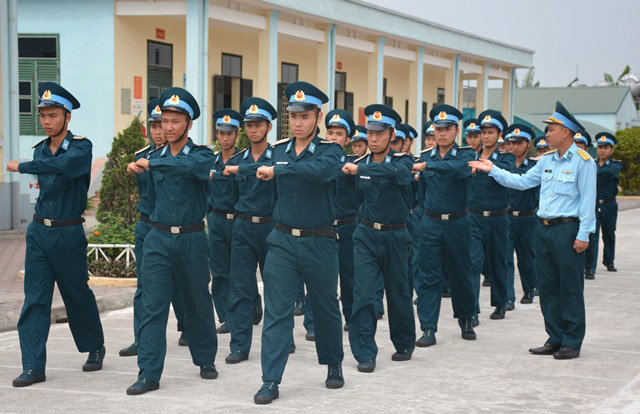 Bộ đội luyện tập từ những động tác điều lệnh đội ngũ cơ bản: Đi đều, chào...