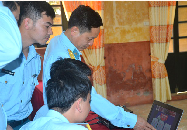 Cán bộ bán sát đơn vị kiểm tra, sửa tập cho bộ đội.