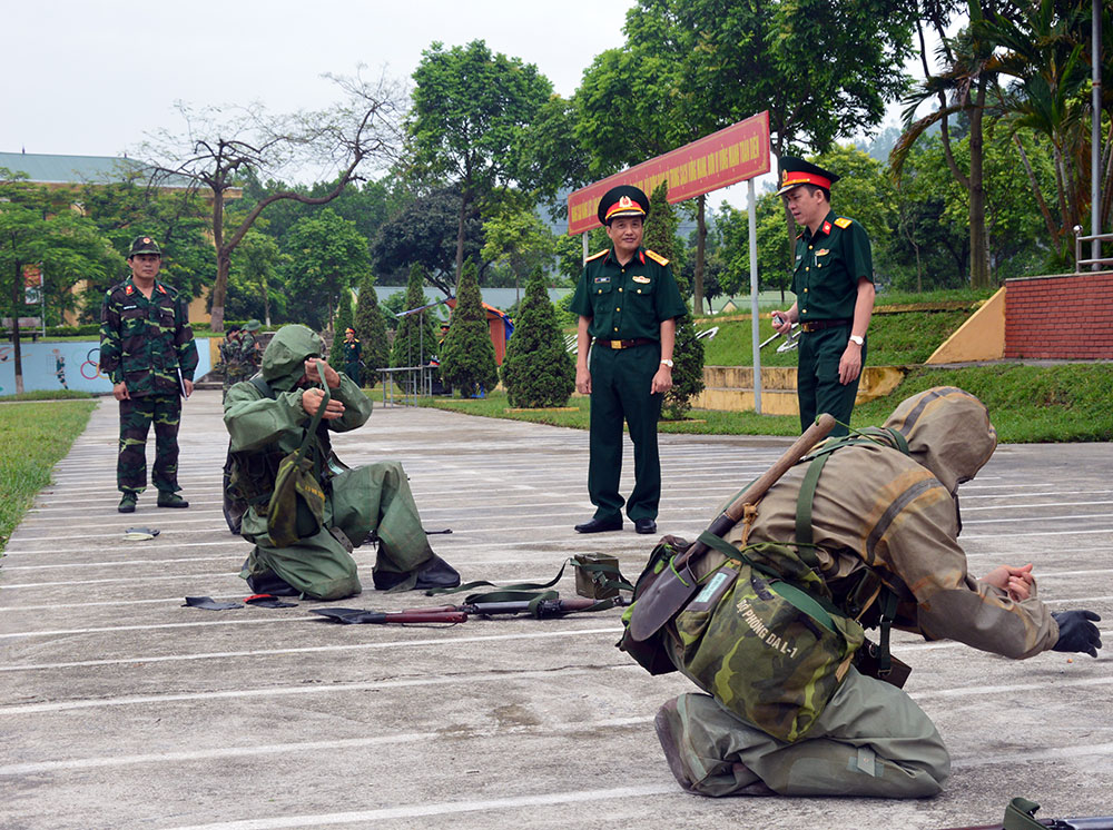 Huấn luyện chuyên ngành tiêu tẩy độc cho cán bộ, chiến sĩ.