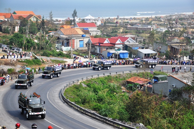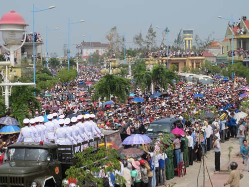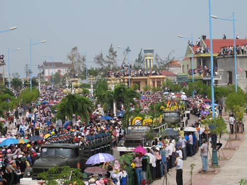 Hàng chục vạn người dân Quảng Bình và nhiều nơi trên cả nước đứng kín hơn 70km từ sân bay Đồng Hới tới Vũng Chùa – Đả