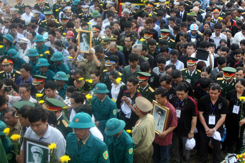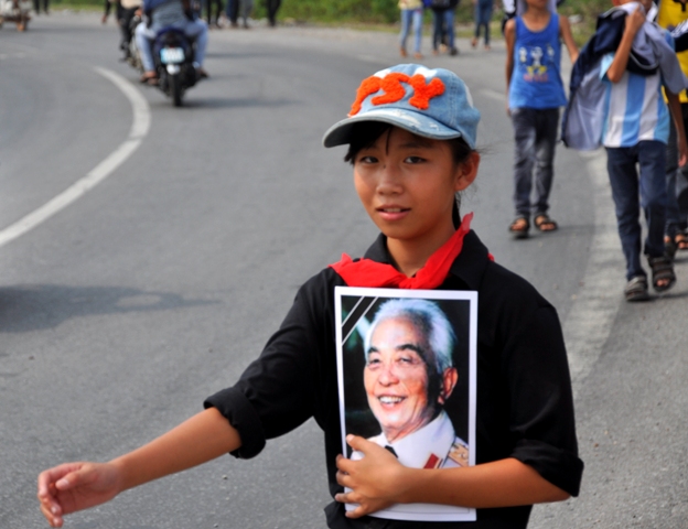 Người dân đứng kín hai bên đường từ sân bay đến Vũng Chùa- Đảo Yến để tiễn biệt Đại tướng