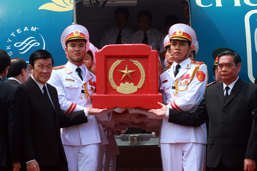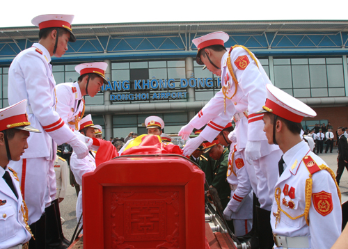 Rước linh cữu Đại tướng từ sân bay Đồng Hới